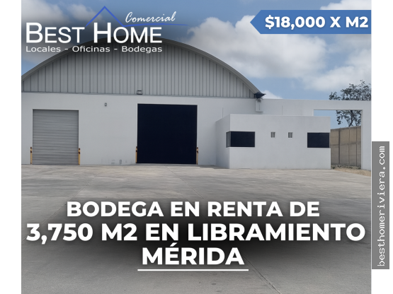 Amplia bodega con ubicación estratégica sobre el Libramiento de Mérida, ideal para logística, almacenamiento, distribución o uso industrial. La propiedad cuenta con 3,750 m² de construcción techada y 2,700 m² de área de maniobras, lo que permite la circulación cómoda de tráileres y vehículos de carga pesada.