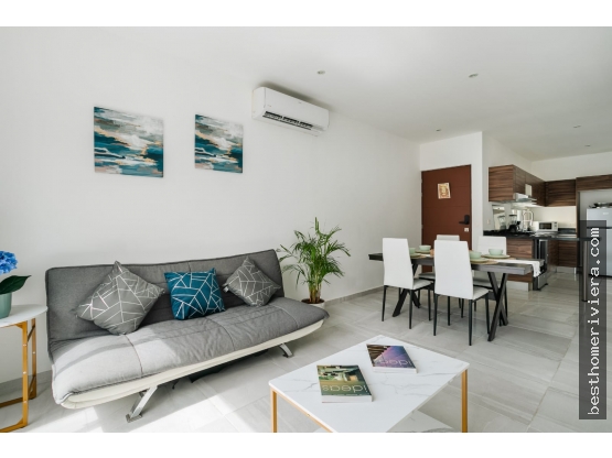Disfruta de un estilo de vida cómodo y práctico en este departamento completamente amueblado ubicado en uno de los desarrollos con mejor ubicación en Midtown Cancún.