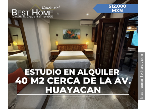 Estudio de 40 m2 en renta cerca de Av. Huayacan - Cancún