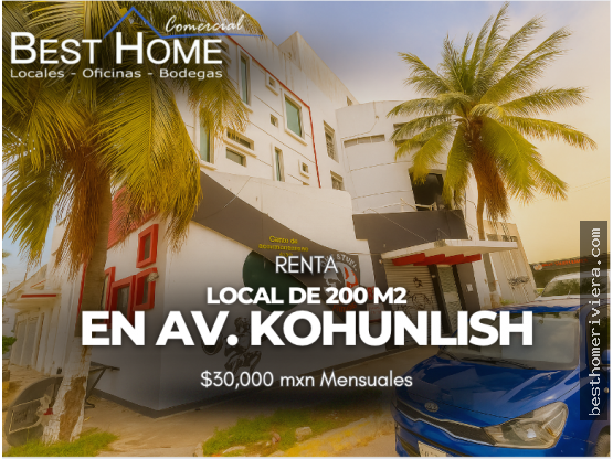 Se renta amplio local comercial ubicado sobre la Avenida Kohunlich, una zona de alto flujo vehicular y peatonal en Cancún.