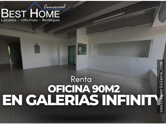 Oficina de 90 m² en renta dentro de Galerías Infinity, ubicada sobre Av. Nichupté, una de las zonas más céntricas y de fácil acceso en Cancún.